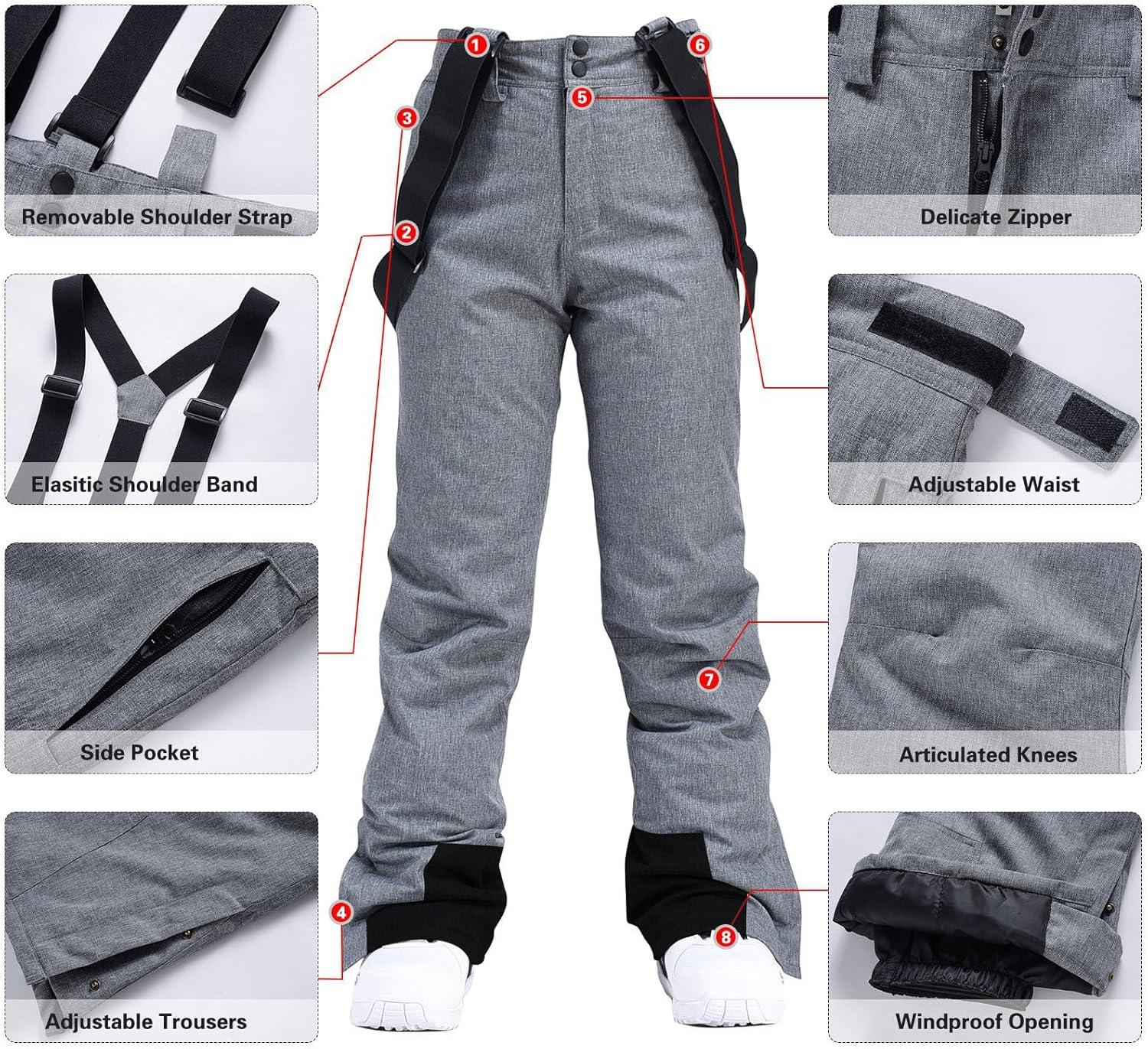GS SNOWING Women Baggy Ski Pants Men Snow Bibs Snowboard Overall Insulated Windproof Waterproof for Winter Outdoor Sports(White)