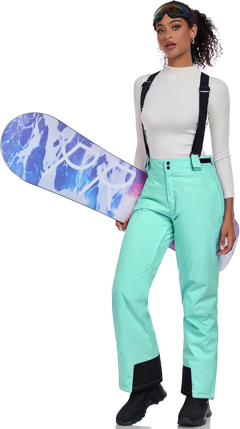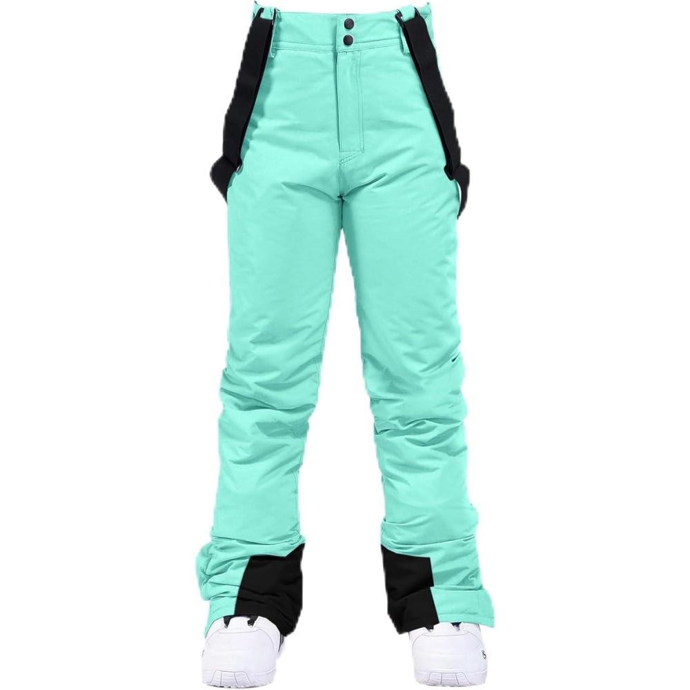 ALSOGO Women’s Insulated Snow Pants Winter Warm Ski Pant Outdoor Waterproof Snowboard Bibs with Detachable Suspender(Green)