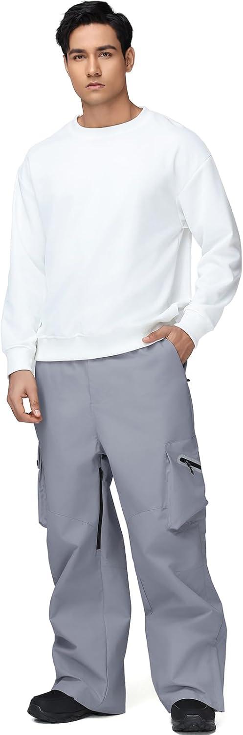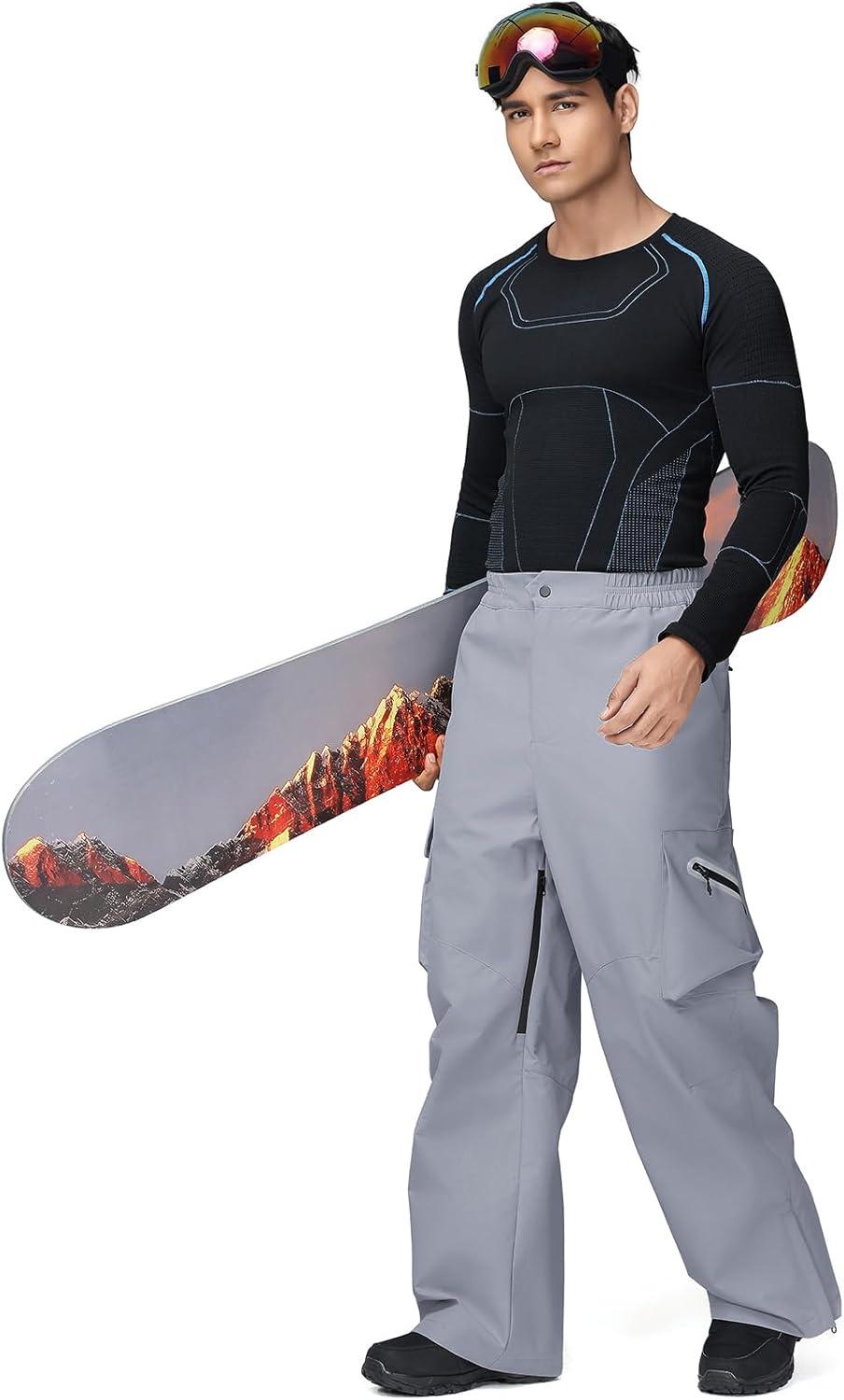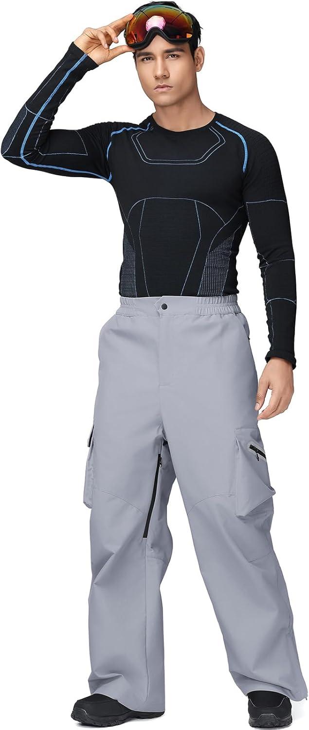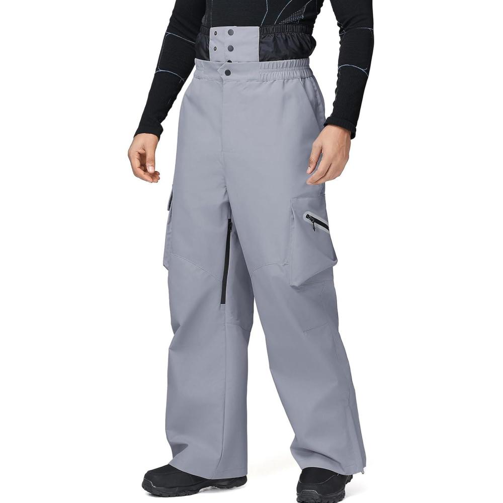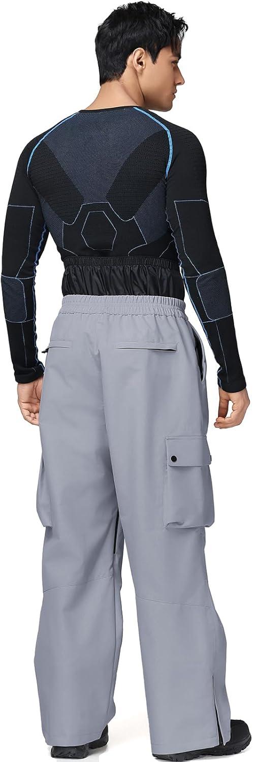 GS SNOWING Mens Ski Pants Super Baggy Snow Snowboard Insulated Waterproof Windproof Loose Cargo Pant for Outdoor Sports(Grey)