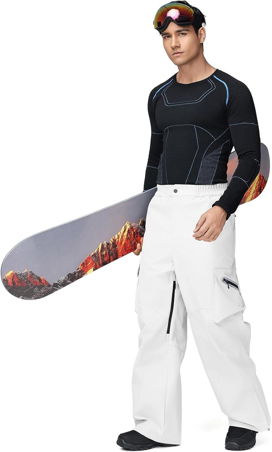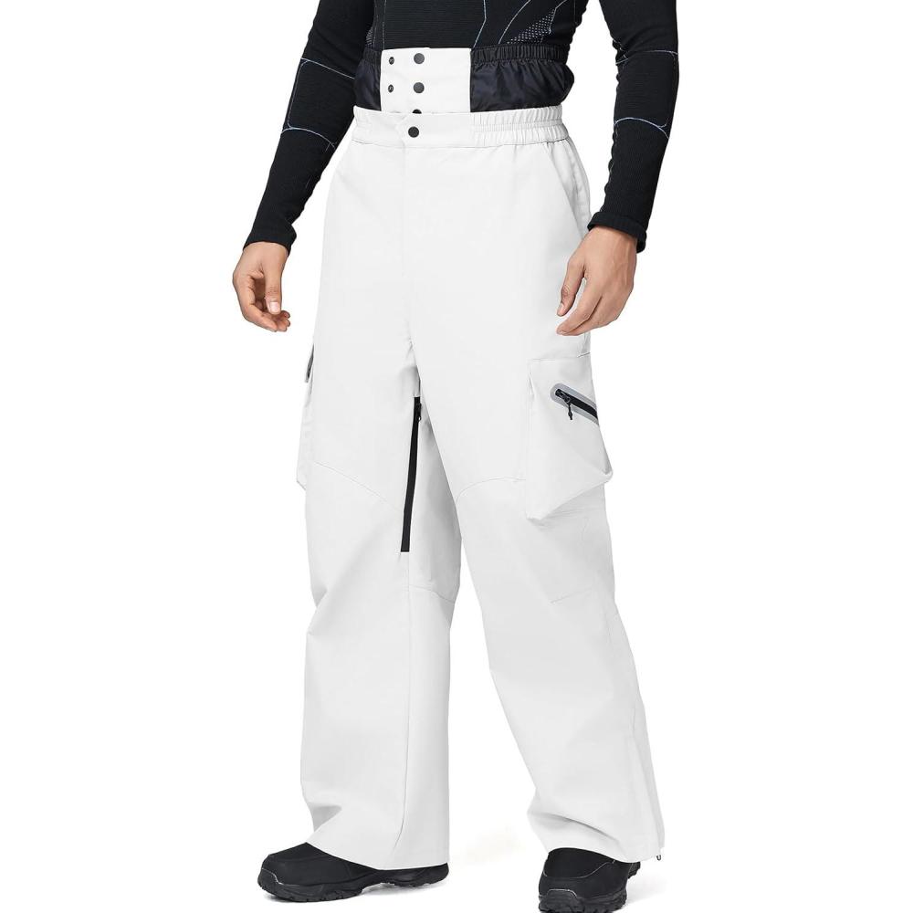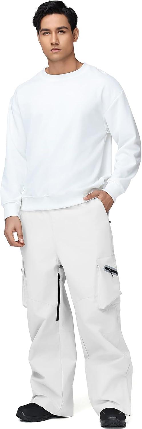 GS SNOWING Mens Ski Pants Super Baggy Snow Snowboard Insulated Waterproof Windproof Loose Cargo Pant for Outdoor Sports(White)
