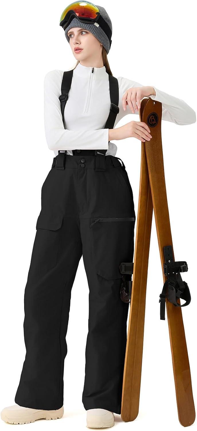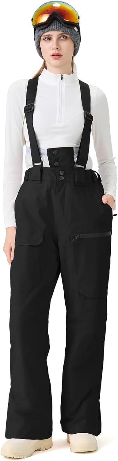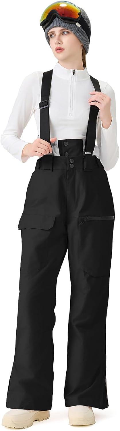 GS SNOWING Women Baggy Ski Pants Men Snow Bibs Snowboard Overall Insulated Windproof Waterproof for Winter Outdoor Sports(Black)