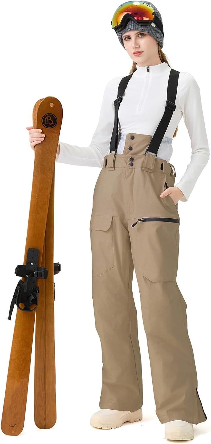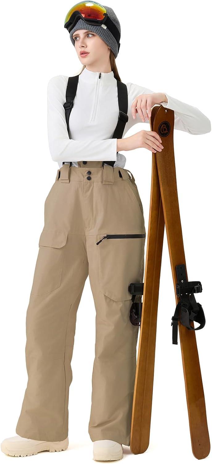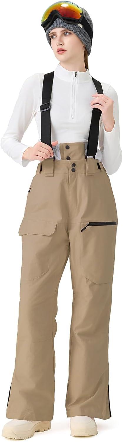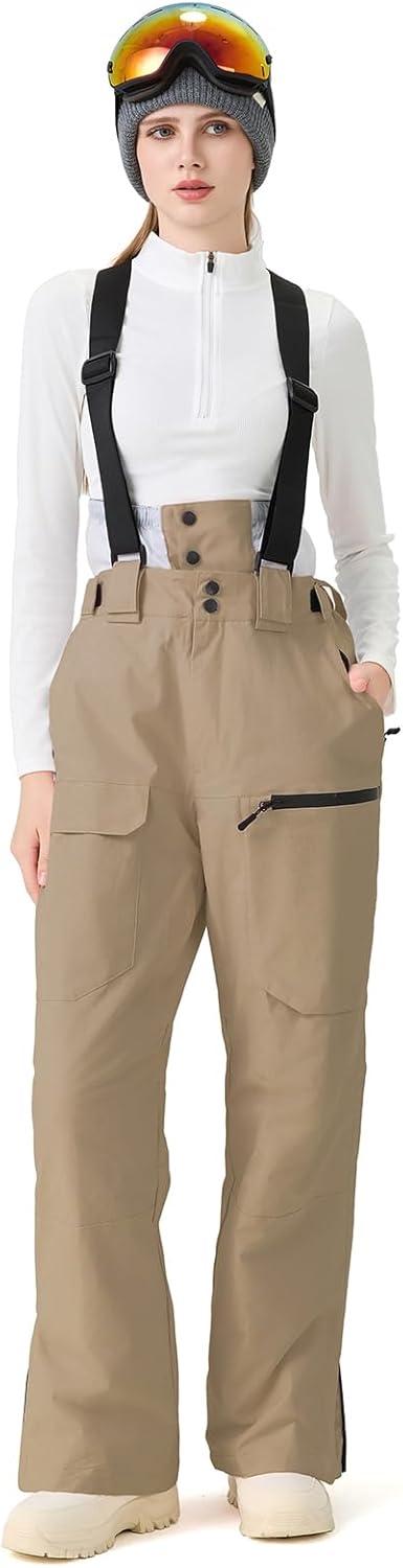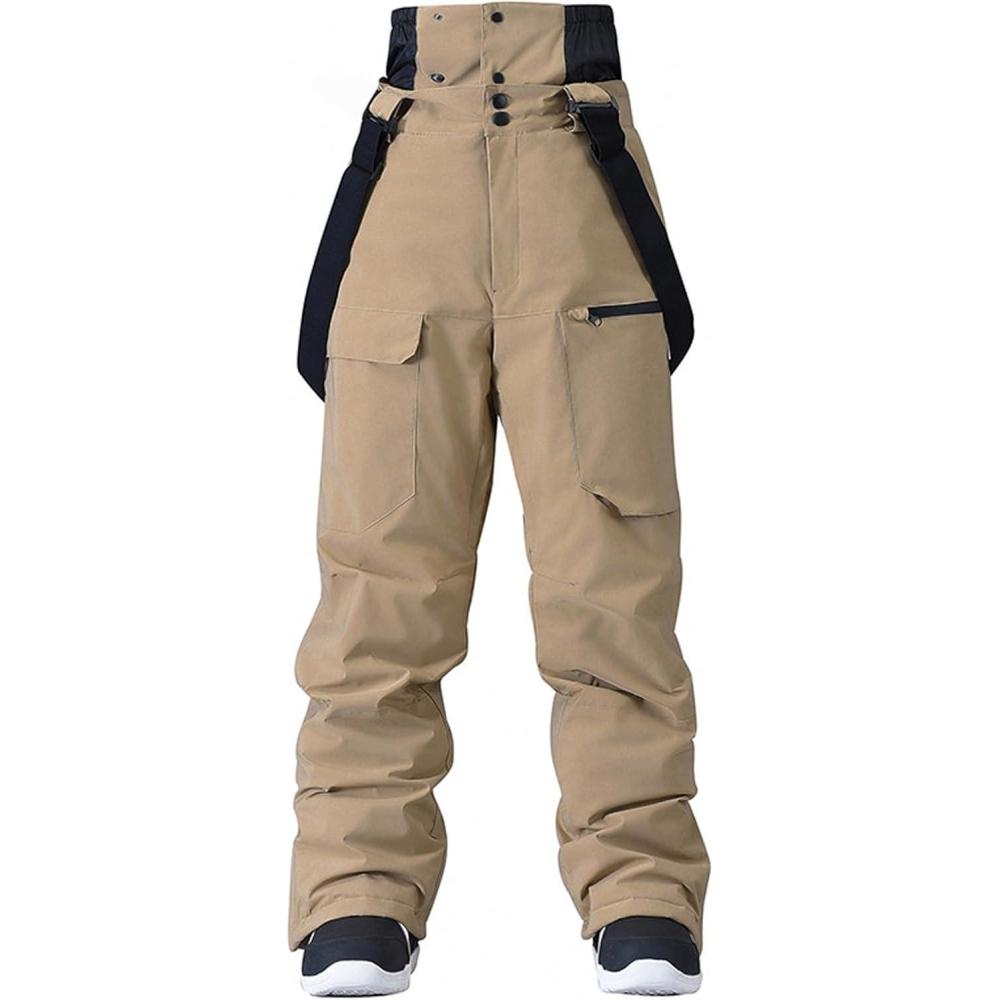 GS SNOWING Women Baggy Ski Pants Men Snow Bibs Snowboard Overall Insulated Windproof Waterproof for Winter Outdoor Sports(Khaki)