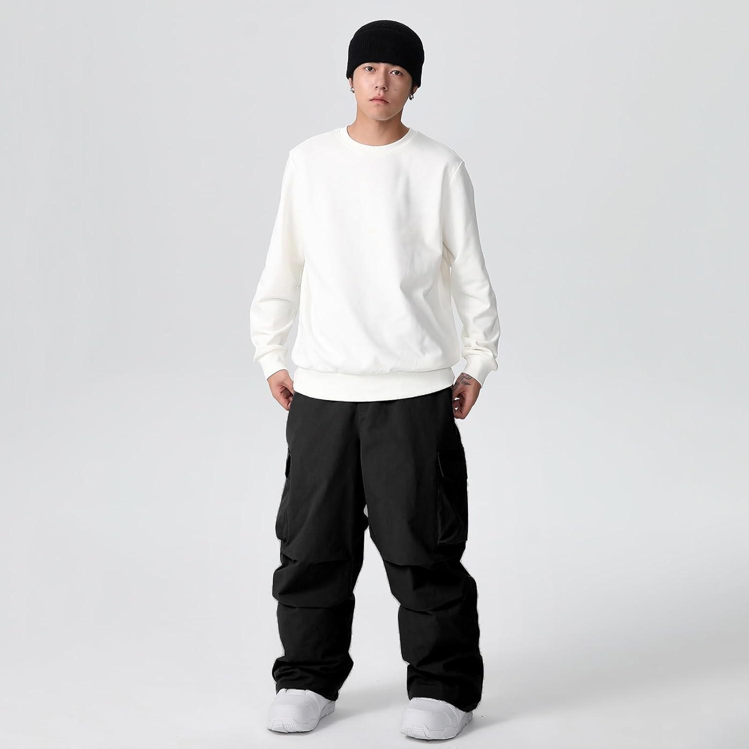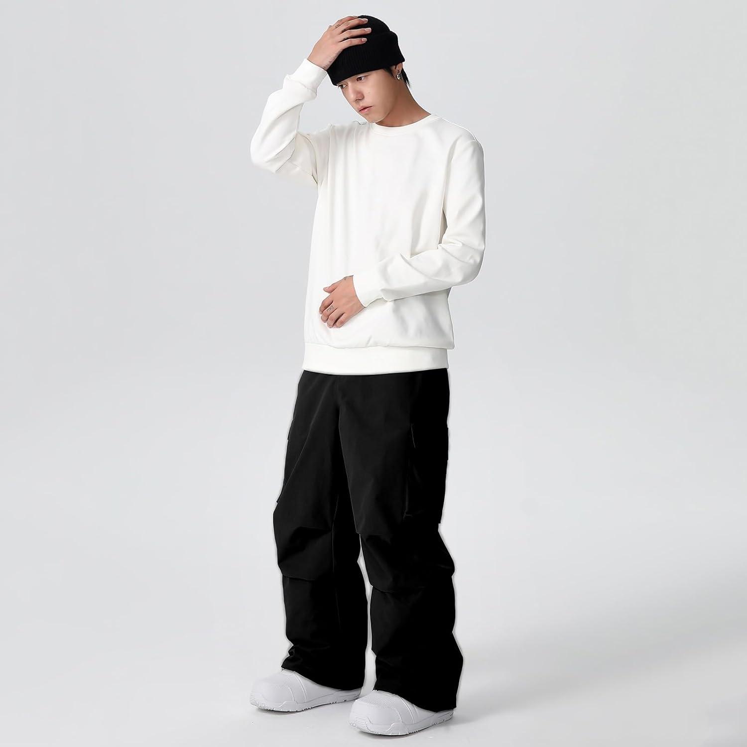 GS SNOWING Mens Ski Pants Super Baggy Snow Snowboard Insulated Waterproof Windproof Loose Cargo Pant for Outdoor Sports(White)