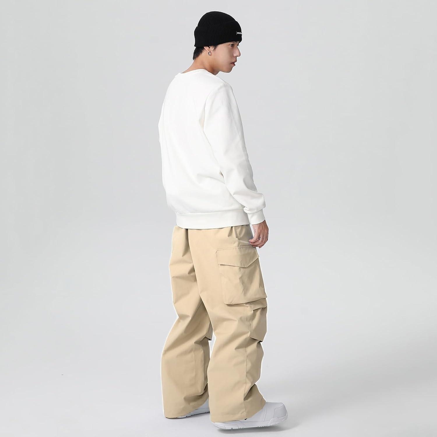 GS SNOWING Women Men Snow Pants Baggy Snowboard Panst Insulated Waterproof Windproof Loose Ski Sport for Couples(Khaki)