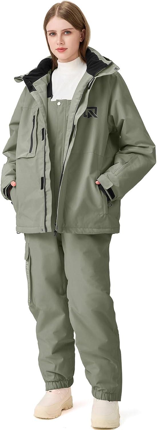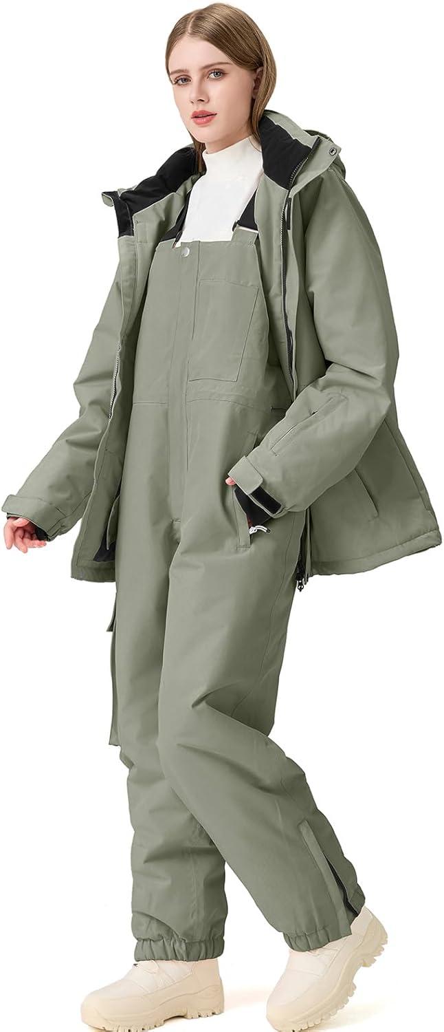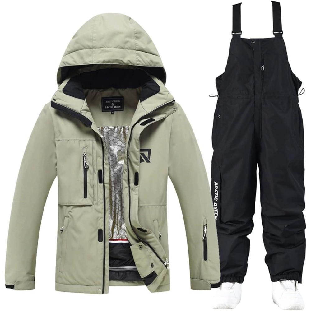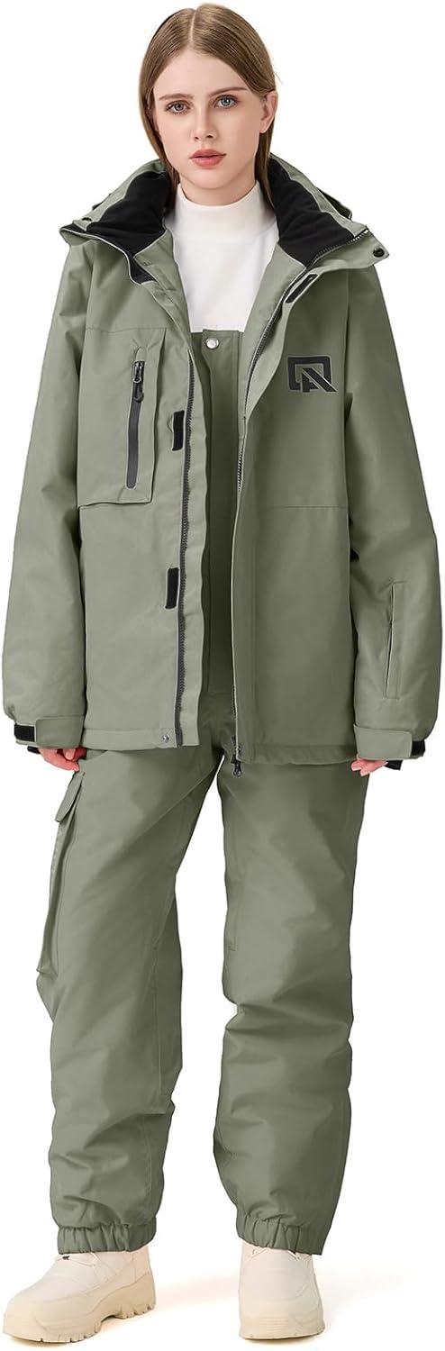 GS SNOWING Women’s Ski Jackets and Pants Set Windproof Waterproof Snowboard Jacket Bibs Two Piece Ski Suits(#384gn+1622bk)