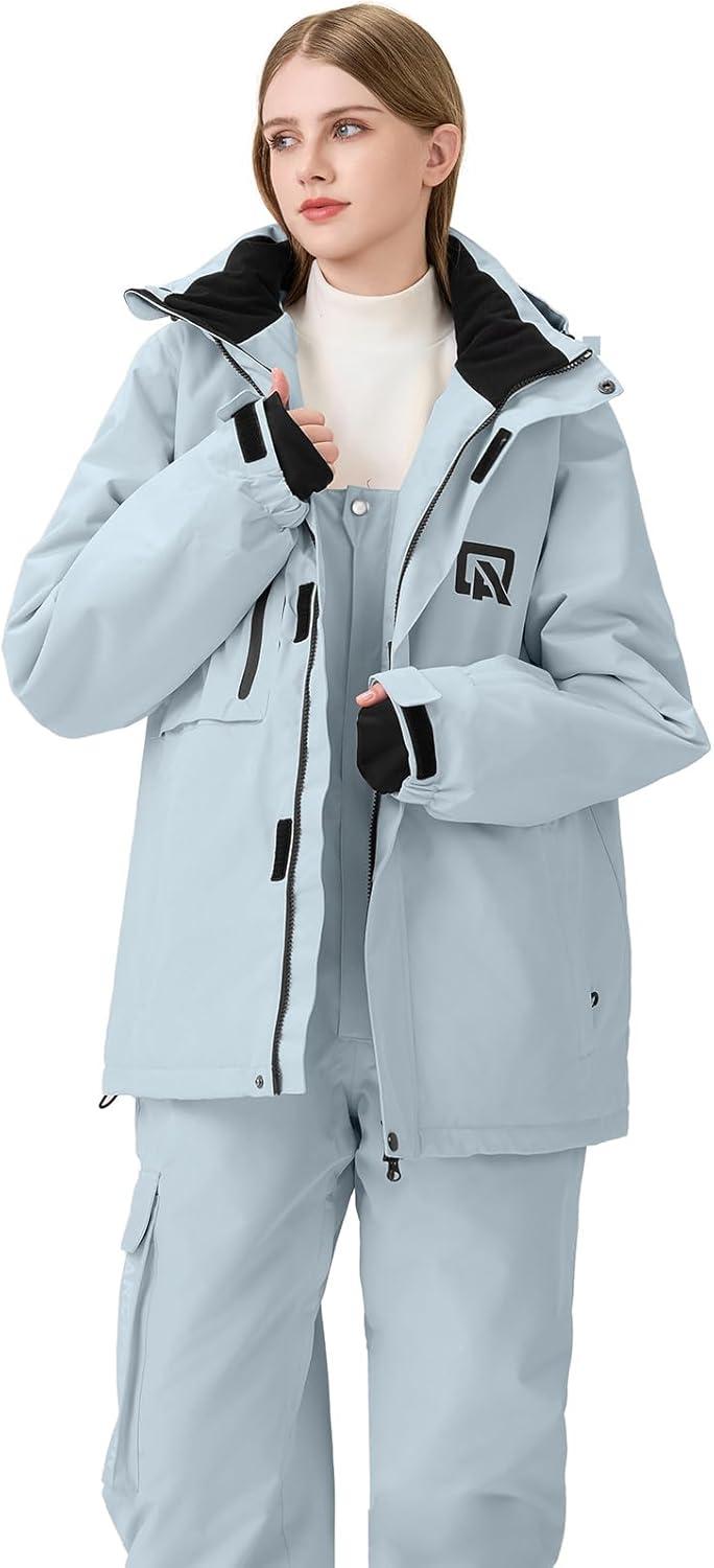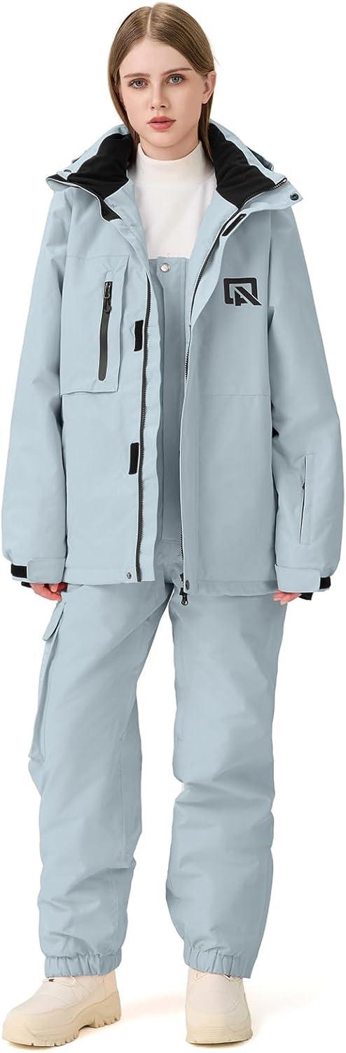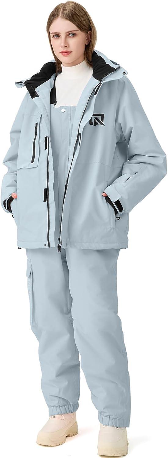 GS SNOWING Women’s Ski Jackets and Pants Set Windproof Waterproof Snowboard Jacket Bibs Two Piece Ski Suits(#384gy+1622bk)