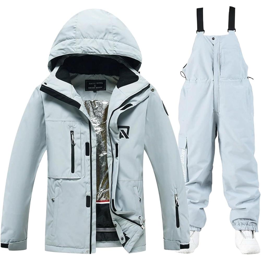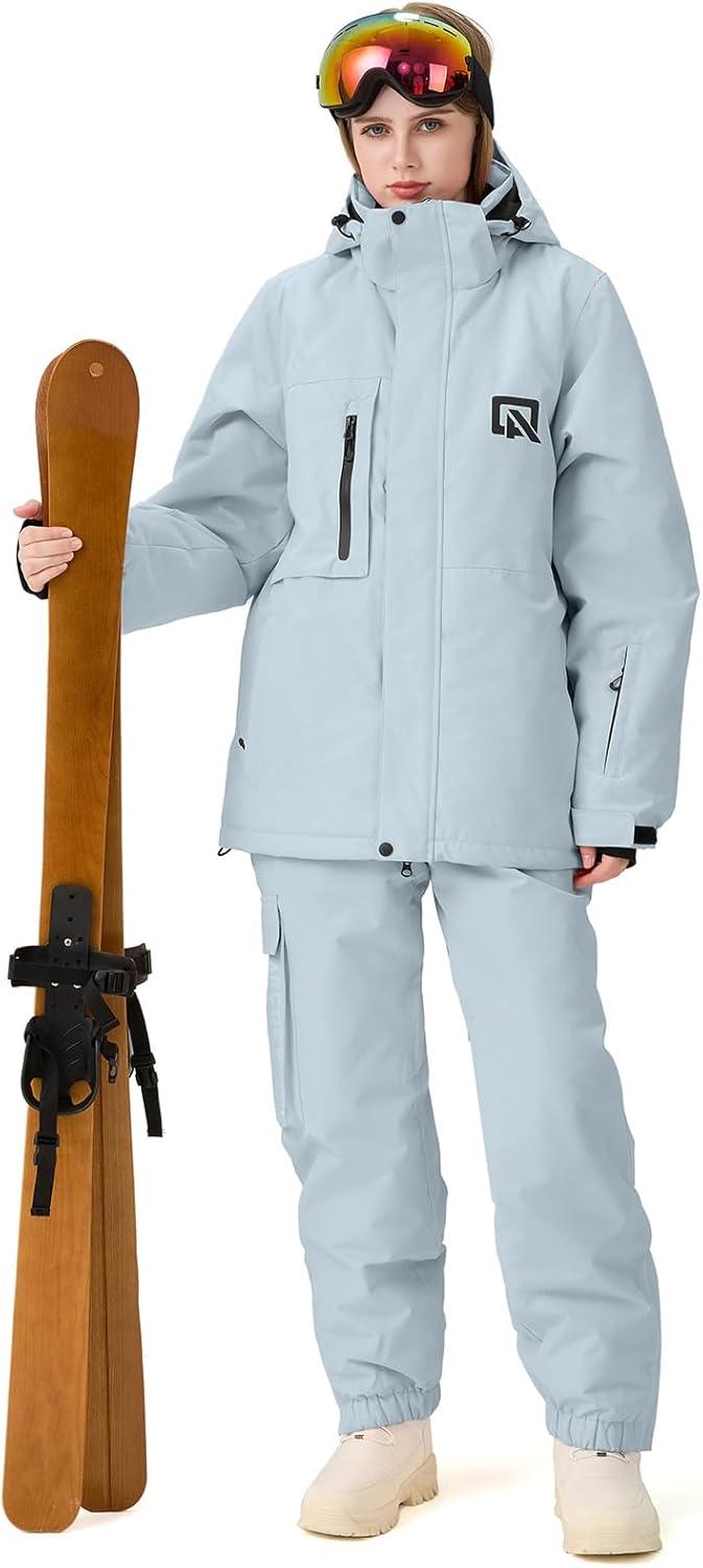 GS SNOWING Women’s Ski Jackets and Pants Set Windproof Waterproof Snowboard Jacket Bibs Two Piece Ski Suits(#384gy+1622gy)