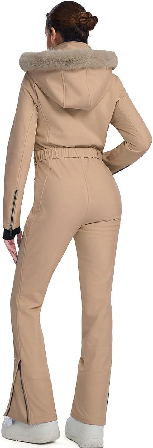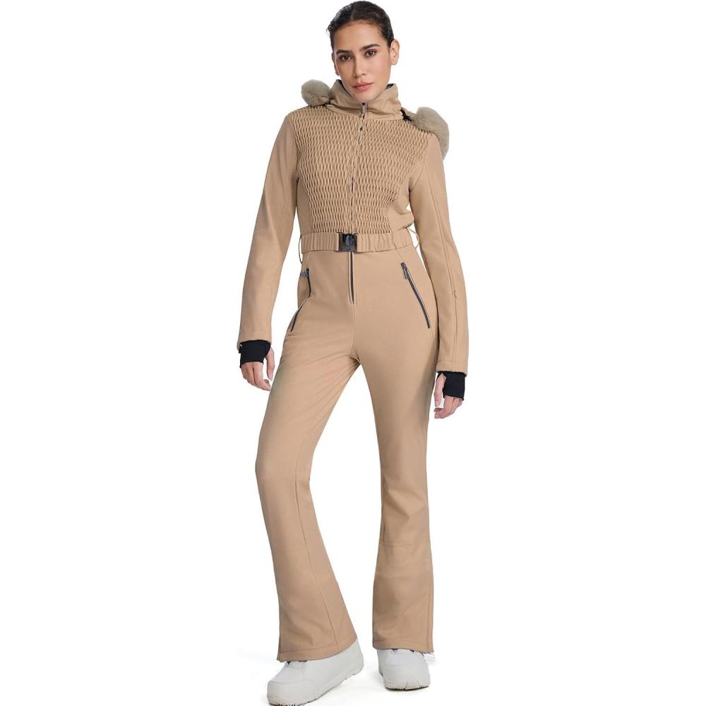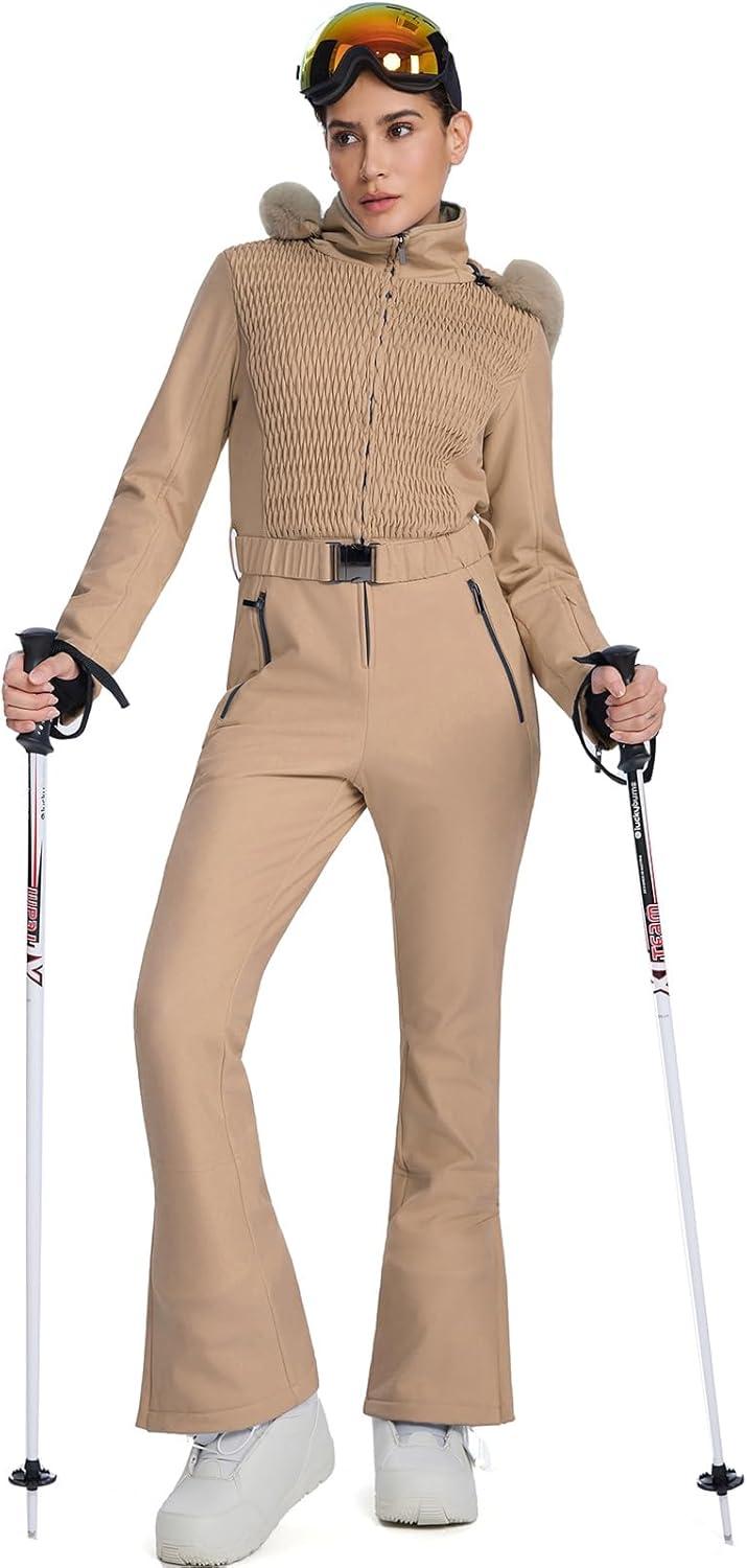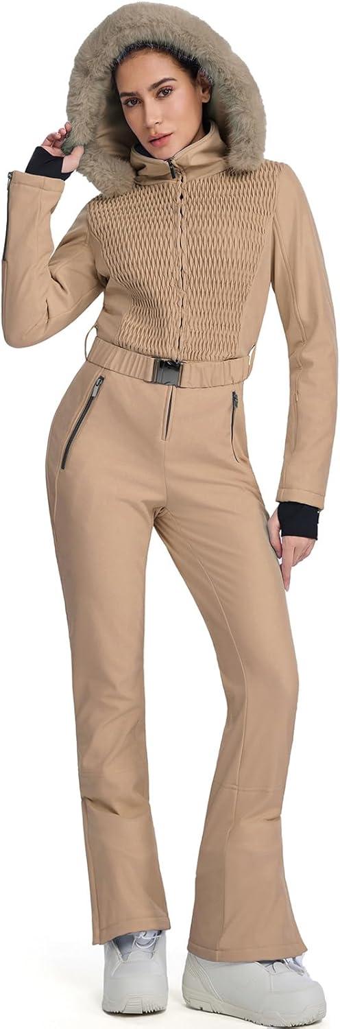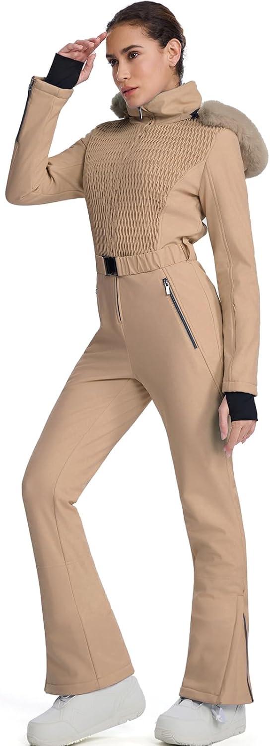 GS SNOWING Womens Ski Suit One Piece Snowsuit Winter Snow Snowboard Slim Insulated Jumpsuits Waterproof Windproof(Khaki)