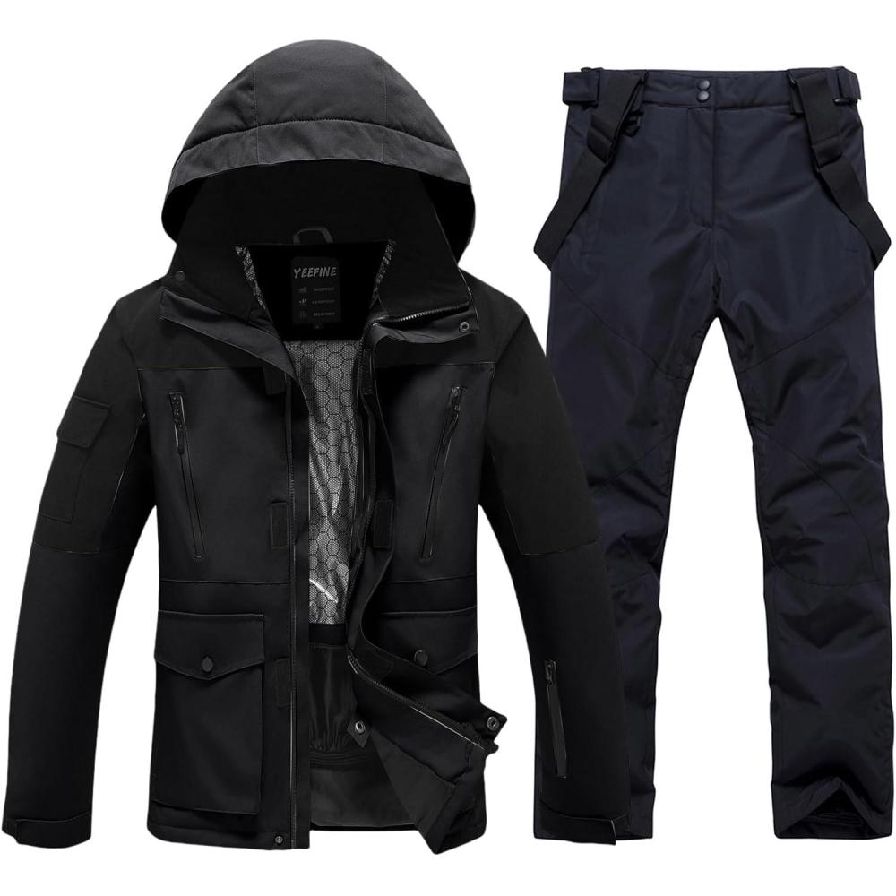 Men’s Jacket and Pants Set Insulated Waterproof Waterproof Snowboard Snowsuits for Snow Sport(#01ag+black)