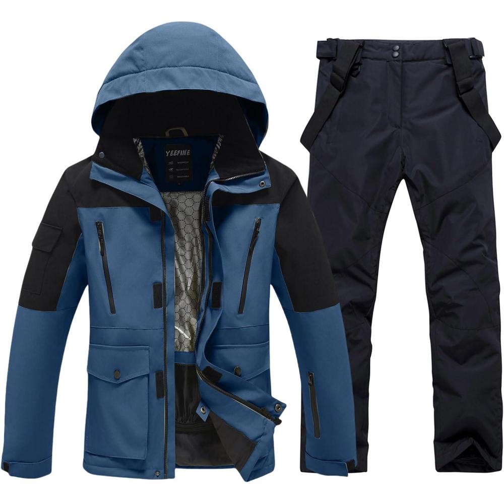 Men’s Jacket and Pants Set Insulated Waterproof Waterproof Snowboard Snowsuits for Snow Sport(#01bu+black)