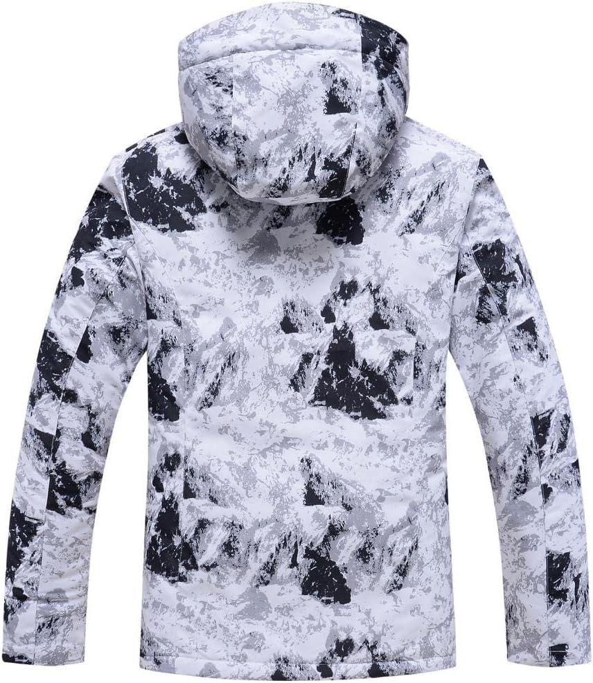 Men’s Jacket and Pants Set Insulated Waterproof Waterproof Snowboard Snowsuits for Snow Sport(#02white+orange)