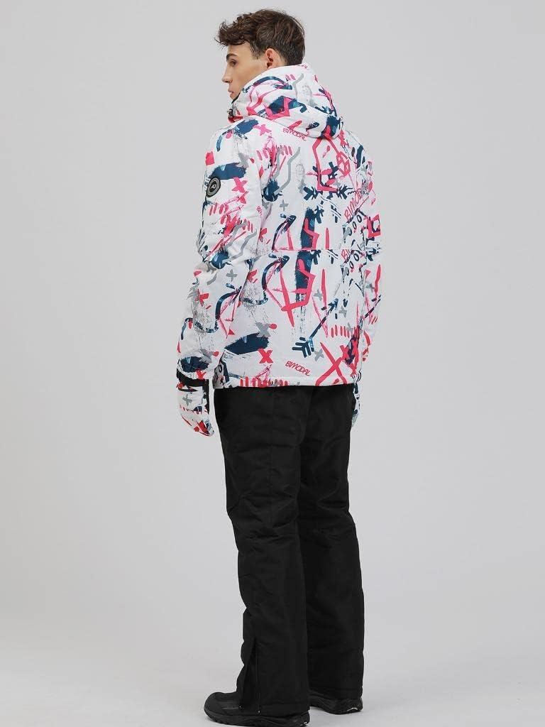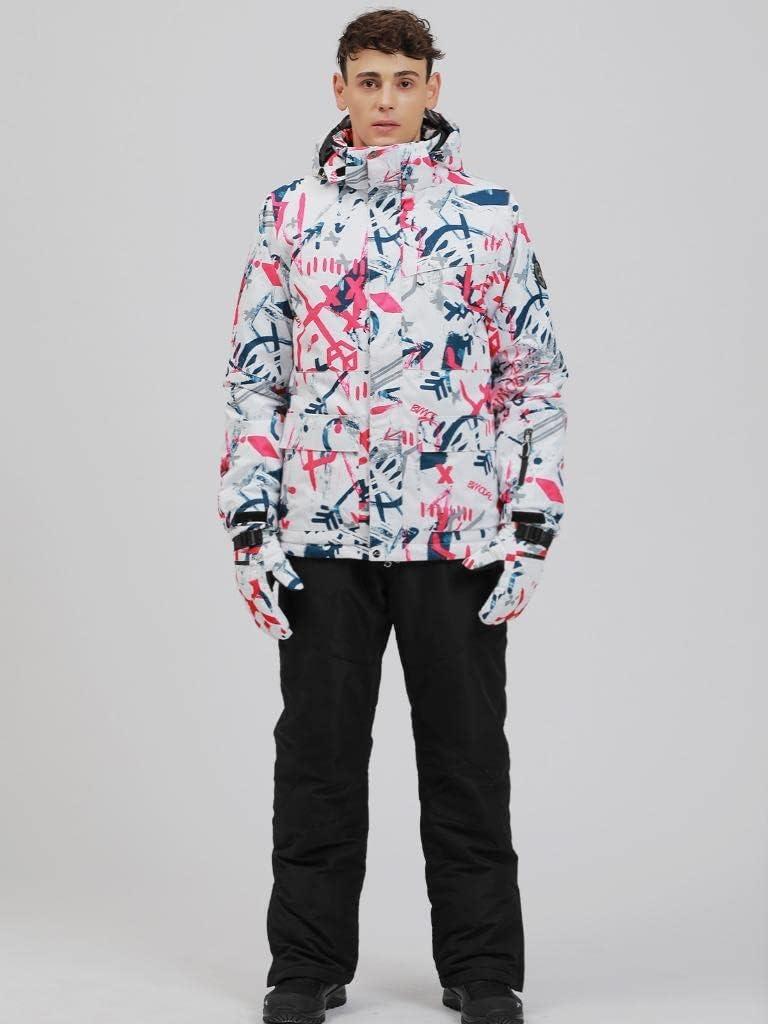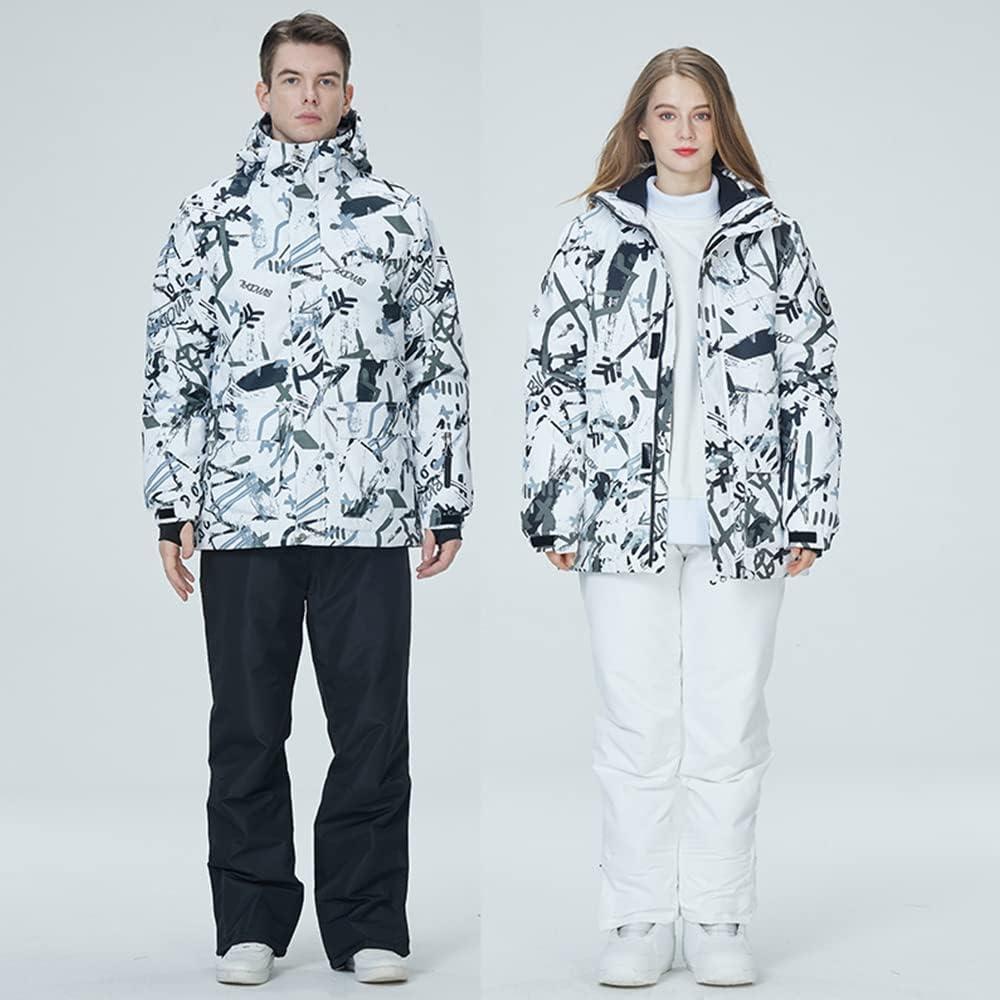 Men’s Jacket and Pants Set Insulated Waterproof Waterproof Snowboard Snowsuits for Snow Sport(#05white)