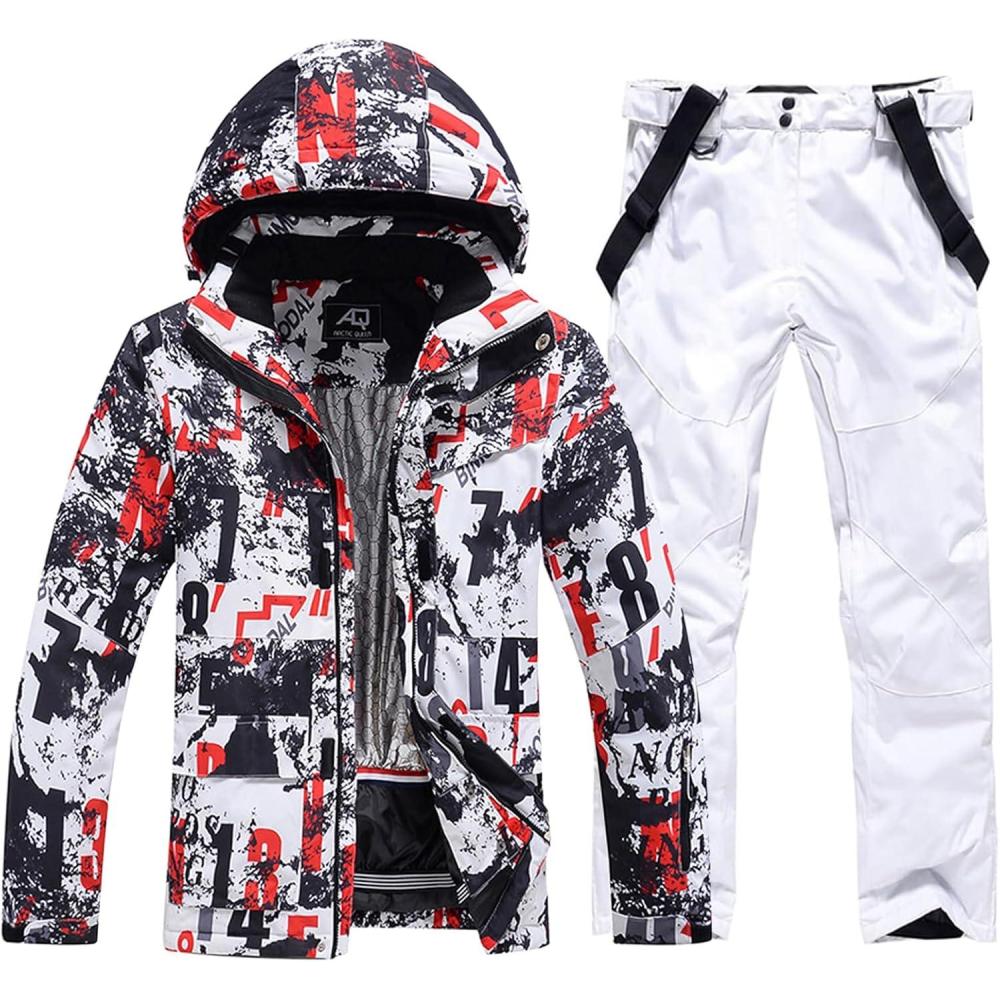 Men’s Jacket and Pants Set Insulated Waterproof Waterproof Snowboard Snowsuits for Snow Sport(#238+white)