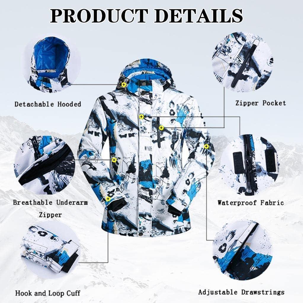 Men’s Winter Windproof Waterproof Snowsuit Snowboard Jacket and Ski Pants for Snow Sport(#02blue)