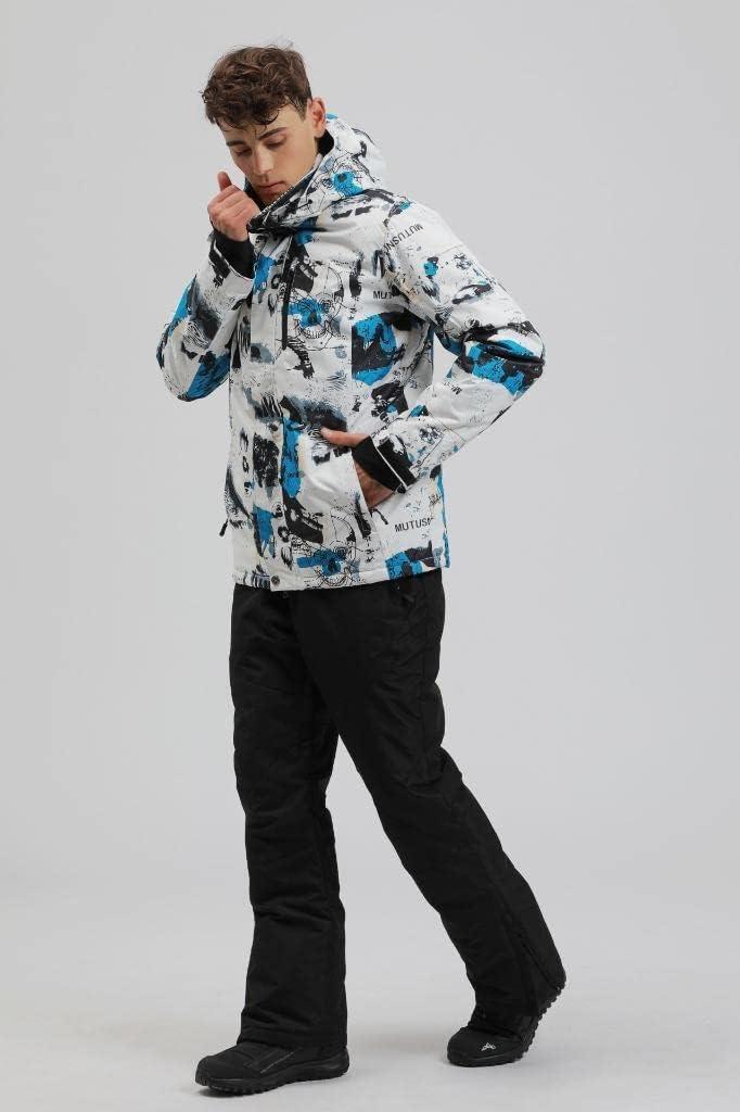 Men’s Winter Windproof Waterproof Snowsuit Snowboard Jacket and Ski Pants for Snow Sport(White)
