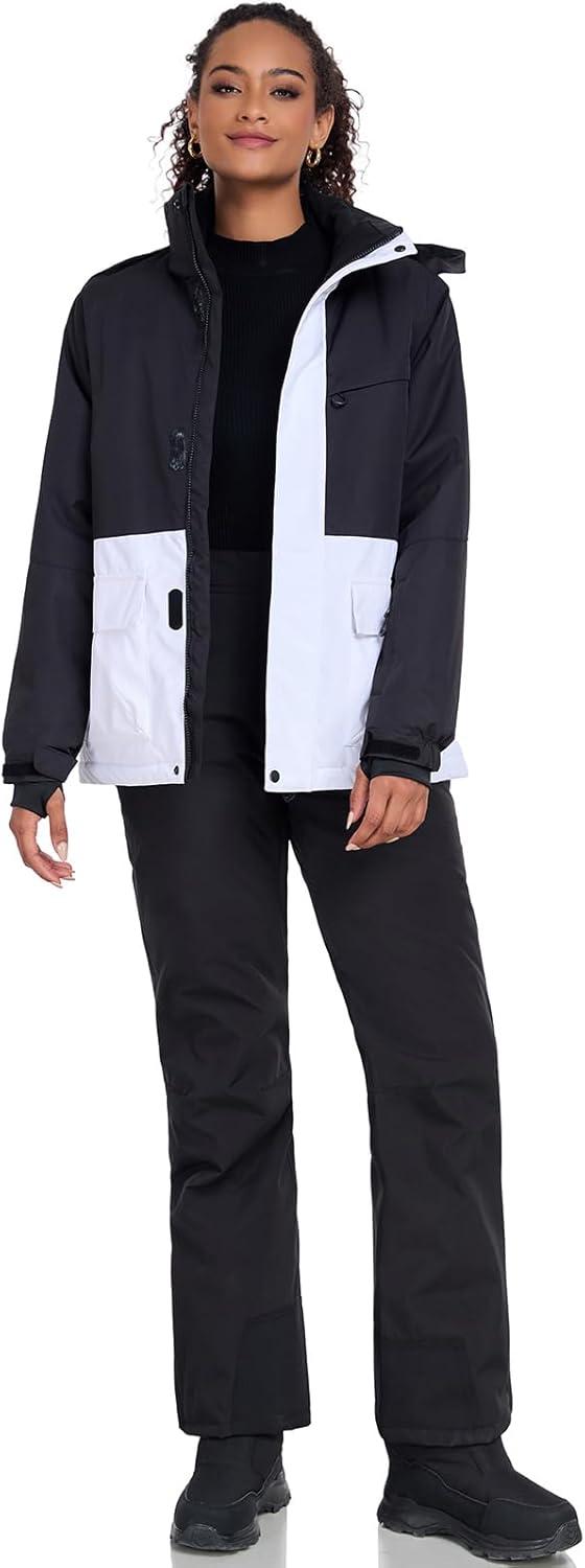 imageWomens Ski Jackets and Bib Pants Set Windproof Waterproof Insulated Snowsuit133bkwblack