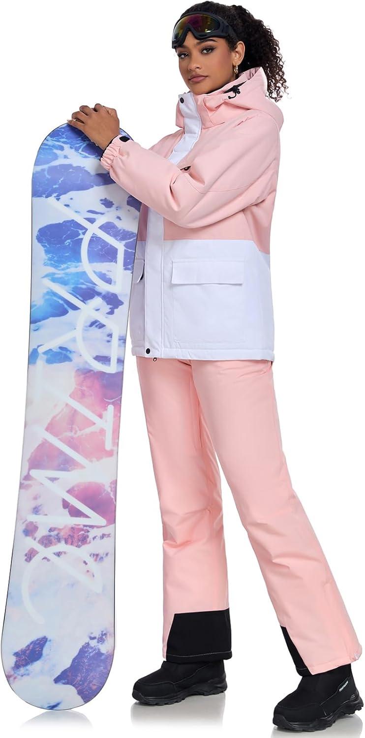 Women’s Ski Jackets and Bib Pants Set Windproof Waterproof Insulated Snowsuit(#133pk+pink)