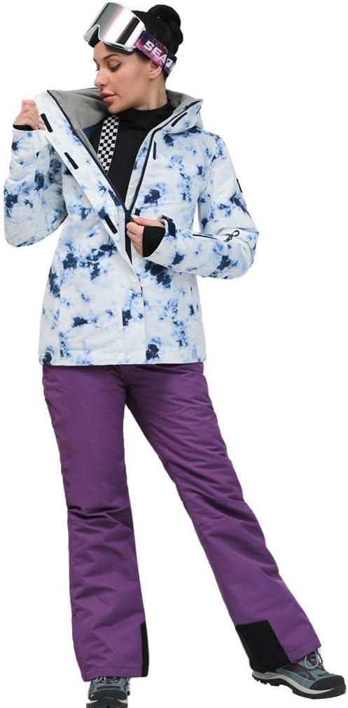 Women’s Ski Jackets and Bib Pants Set Windproof Waterproof Insulated Snowsuit(#389be+black)