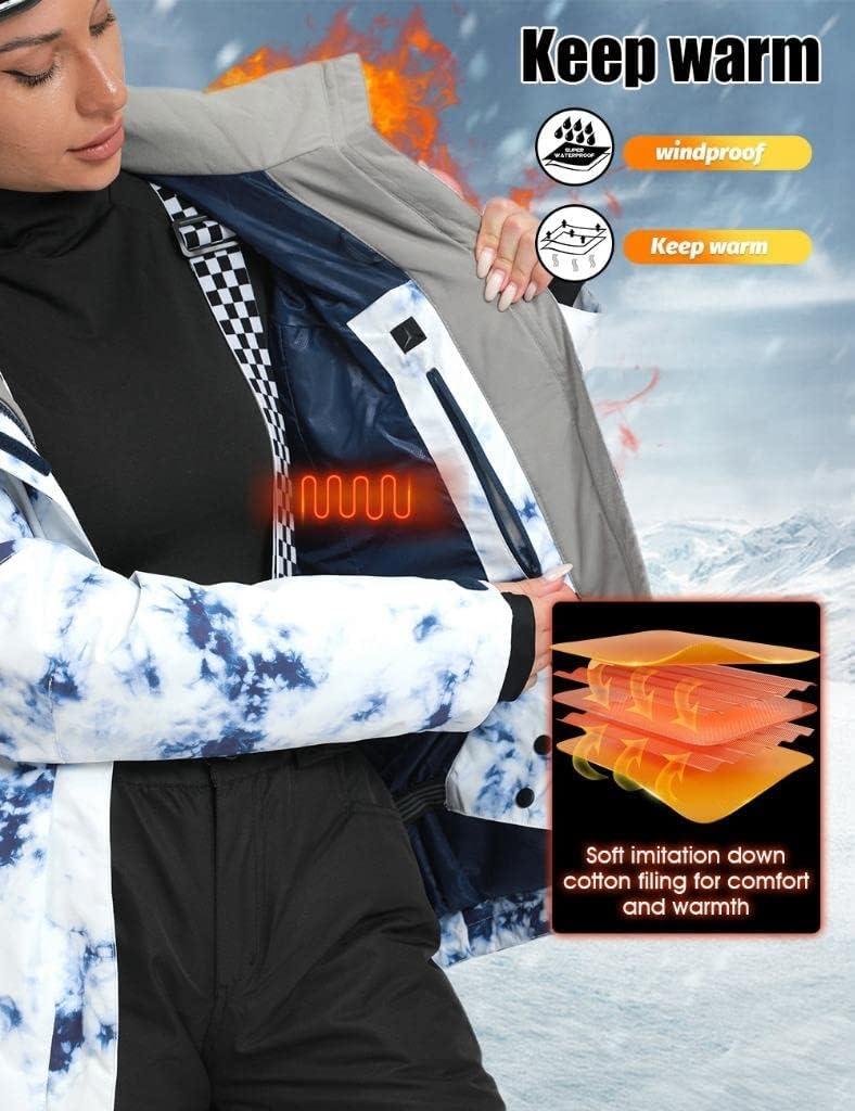 imageWomens Ski Jackets and Bib Pants Set Windproof Waterproof Insulated Snowsuit133pkwwhite