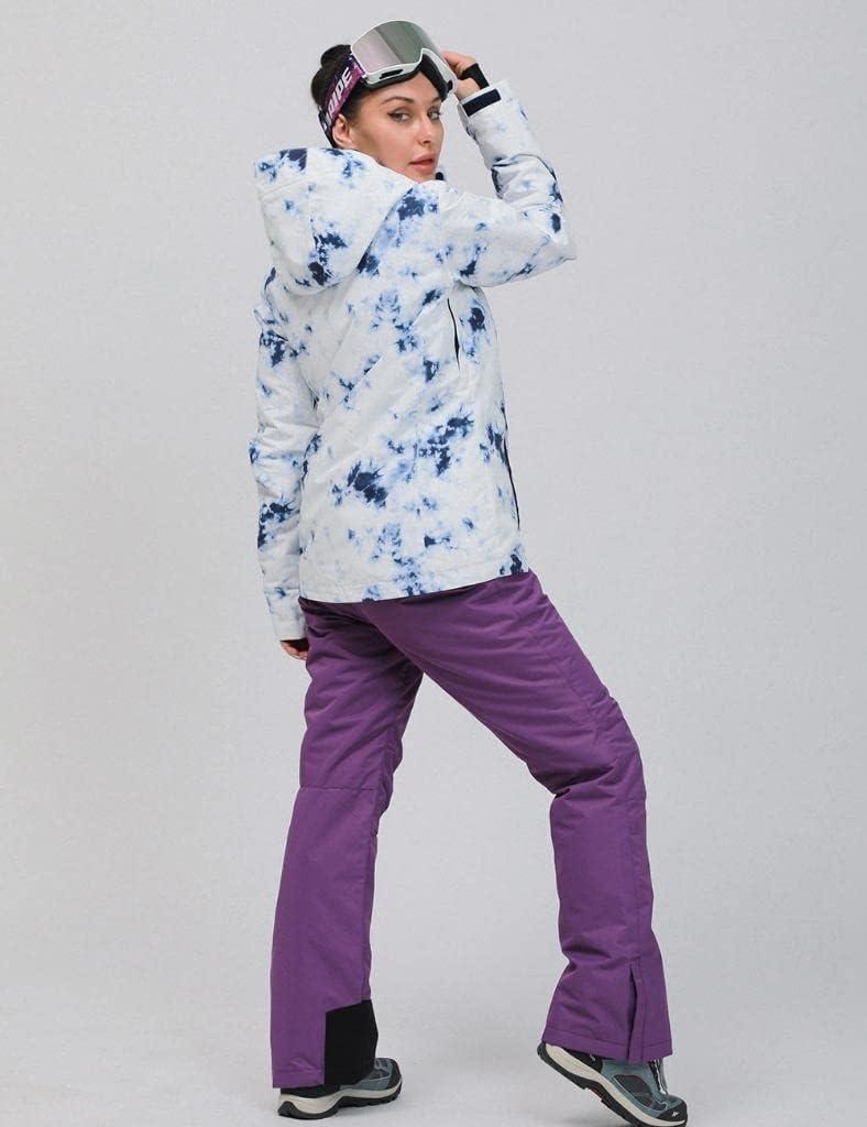 Women’s Ski Jackets and Bib Pants Set Windproof Waterproof Insulated Snowsuit(#133pkw+white)