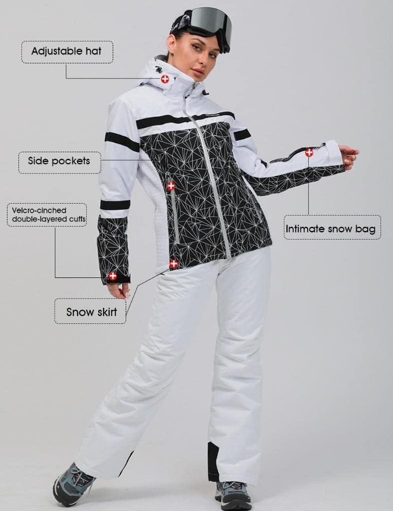 imageWomens Ski Jackets and Bib Pants Set Windproof Waterproof Insulated SnowsuitWhite05