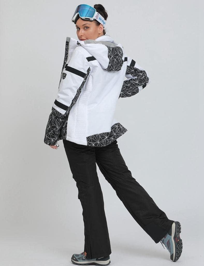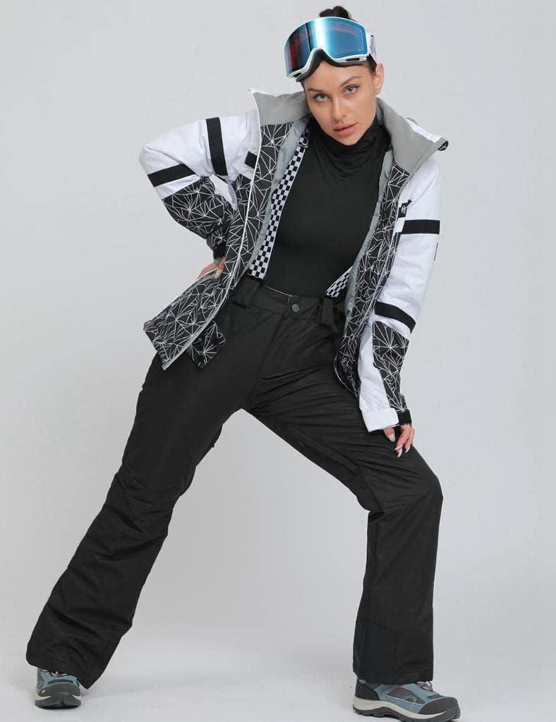 Women’s Ski Jackets and Bib Pants Set Windproof Waterproof Insulated Snowsuit(White05)