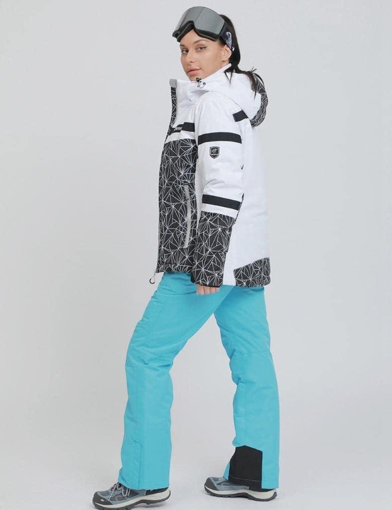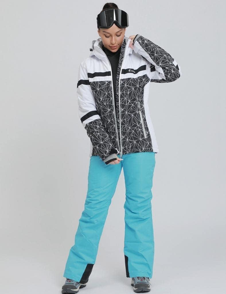 Women’s Ski Jackets and Pants Set Windproof Waterproof Insulated Snowsuit Winter Warm Snowboarding Snow Coat(#002black+white)