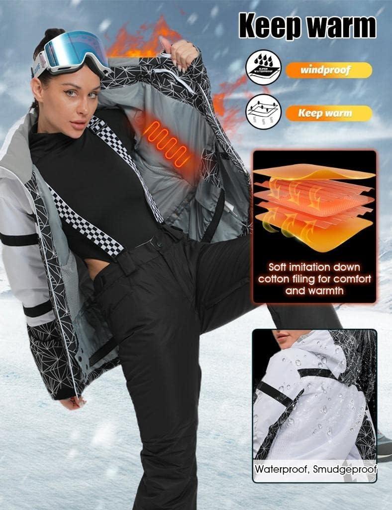 imageWomens Ski Jackets and Pants Set Windproof Waterproof Insulated Snowsuit Winter Warm Snowboarding Snow Coat002blackwhite