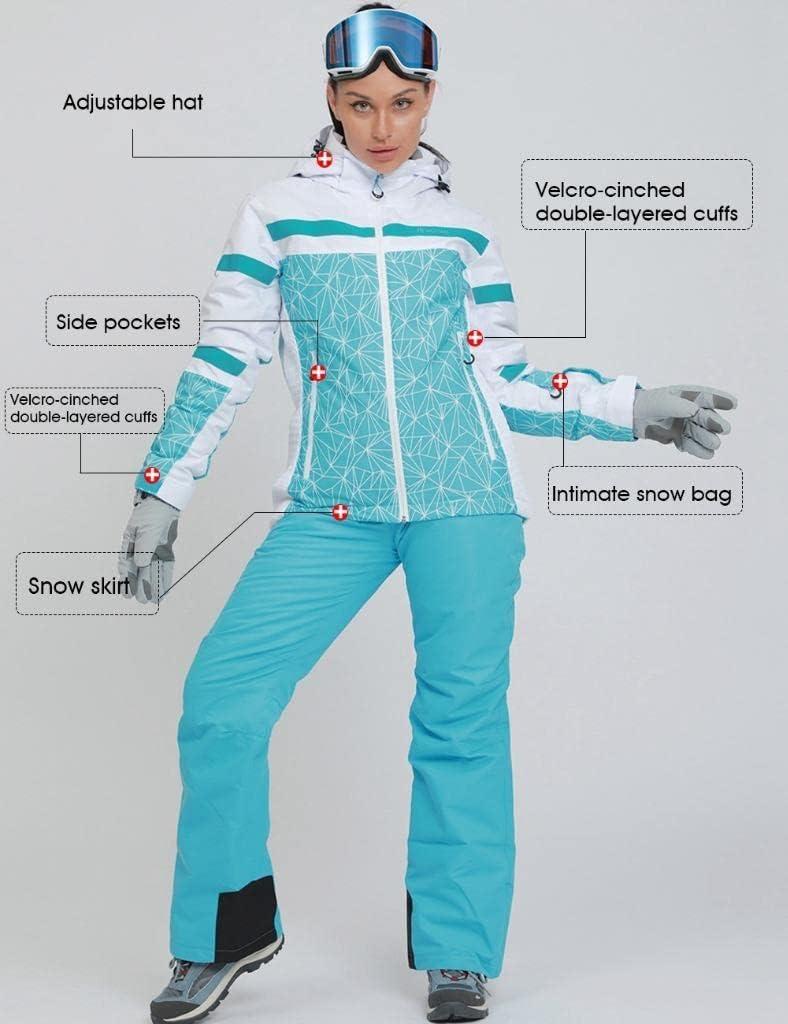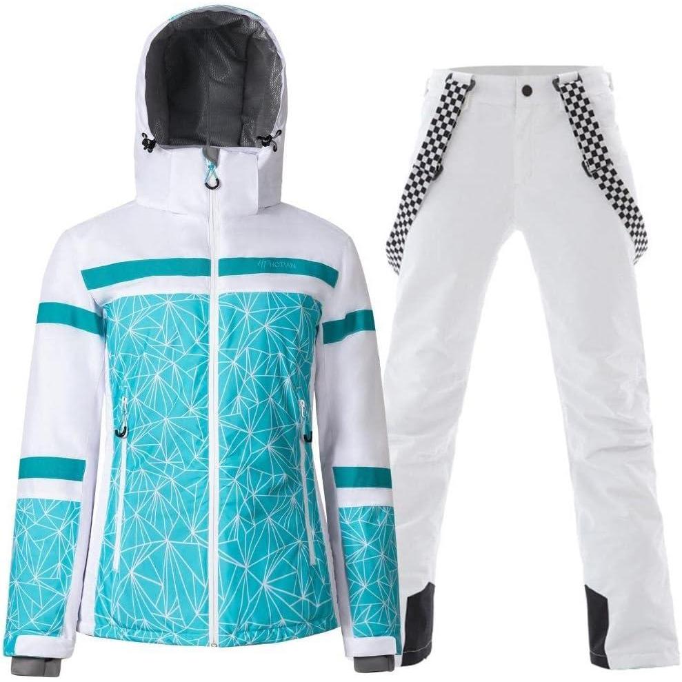 Women’s Ski Jackets and Pants Set Windproof Waterproof Insulated Snowsuit Winter Warm Snowboarding Snow Coat(#002blue+white)
