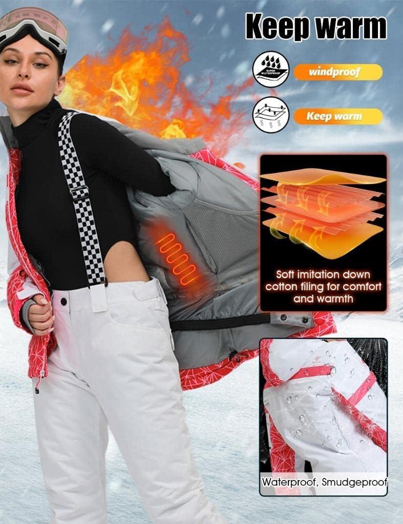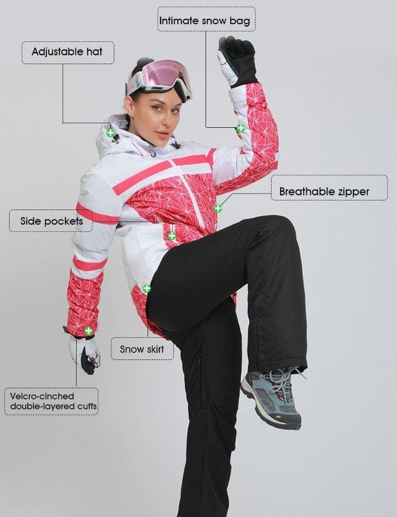 Women’s Ski Jackets and Pants Set Windproof Waterproof Insulated Snowsuit Winter Warm Snowboarding Snow Coat(#002pink+white)