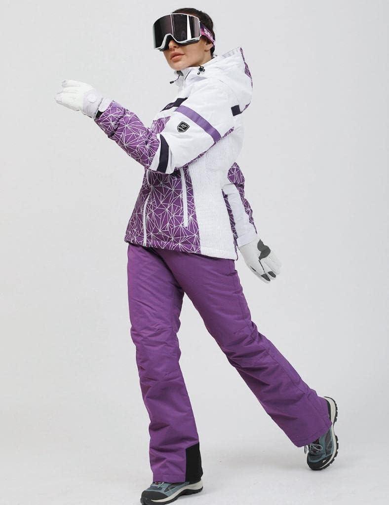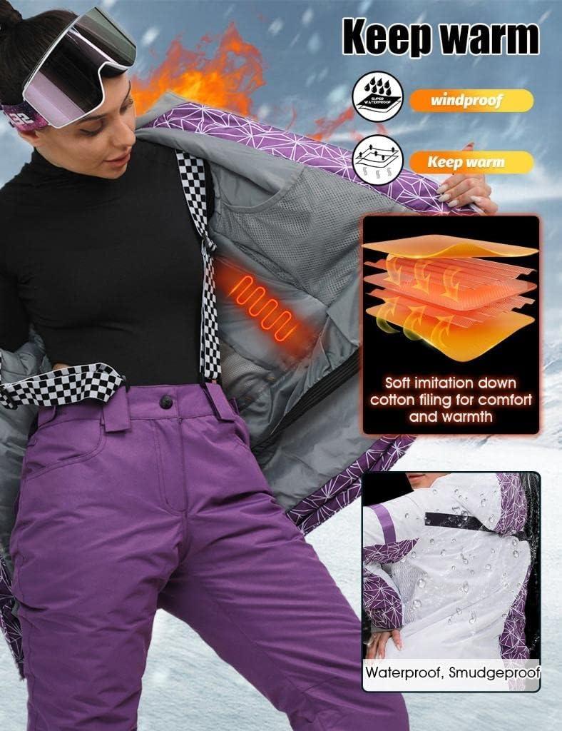 Women’s Ski Jackets and Pants Set Windproof Waterproof Insulated Snowsuit Winter Warm Snowboarding Snow Coat(#002purple+black)
