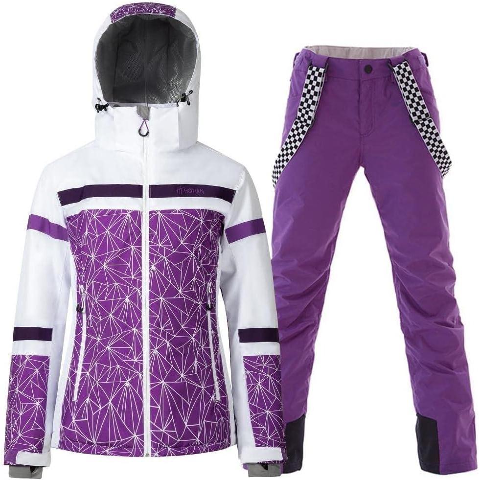 Women’s Ski Jackets and Pants Set Windproof Waterproof Insulated Snowsuit Winter Warm Snowboarding Snow Coat(#002purple+purple)