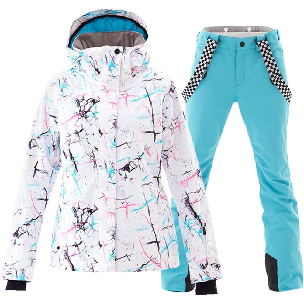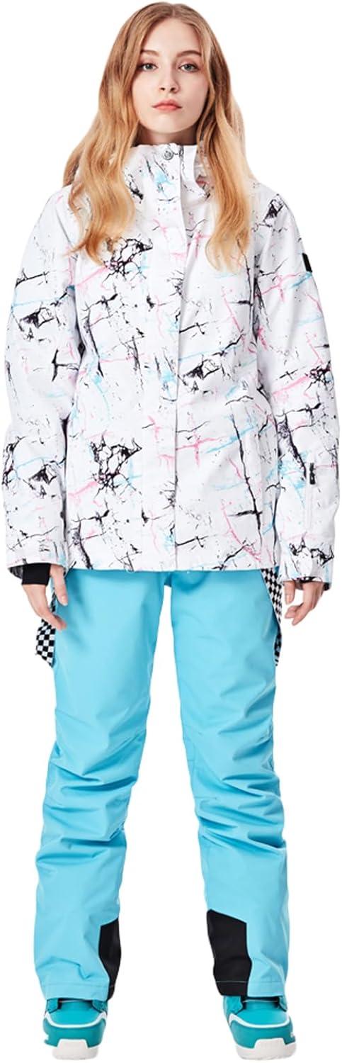 Women’s Ski Jackets and Pants Set Windproof Waterproof Insulated Snowsuit Winter Warm Snowboarding Snow Coat(Blue02)
