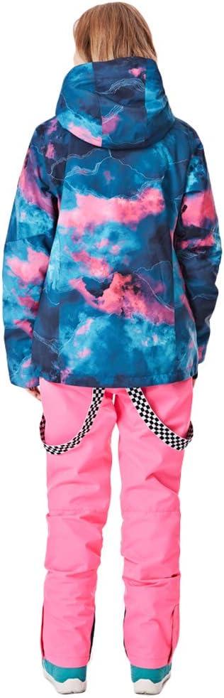 Women’s Ski Jackets and Pants Set Windproof Waterproof Insulated Snowsuit Winter Warm Snowboarding Snow Coat(Pink)