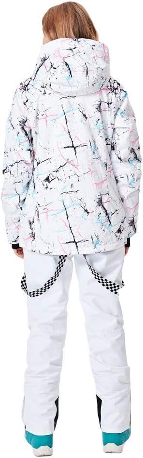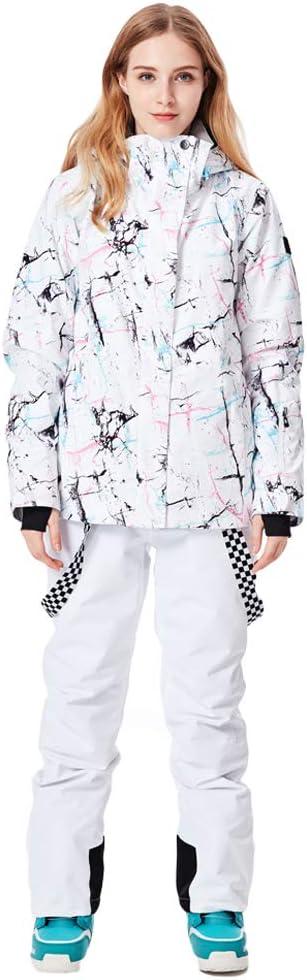 Women’s Ski Jackets and Pants Set Windproof Waterproof Insulated Snowsuit Winter Warm Snowboarding Snow Coat(White)